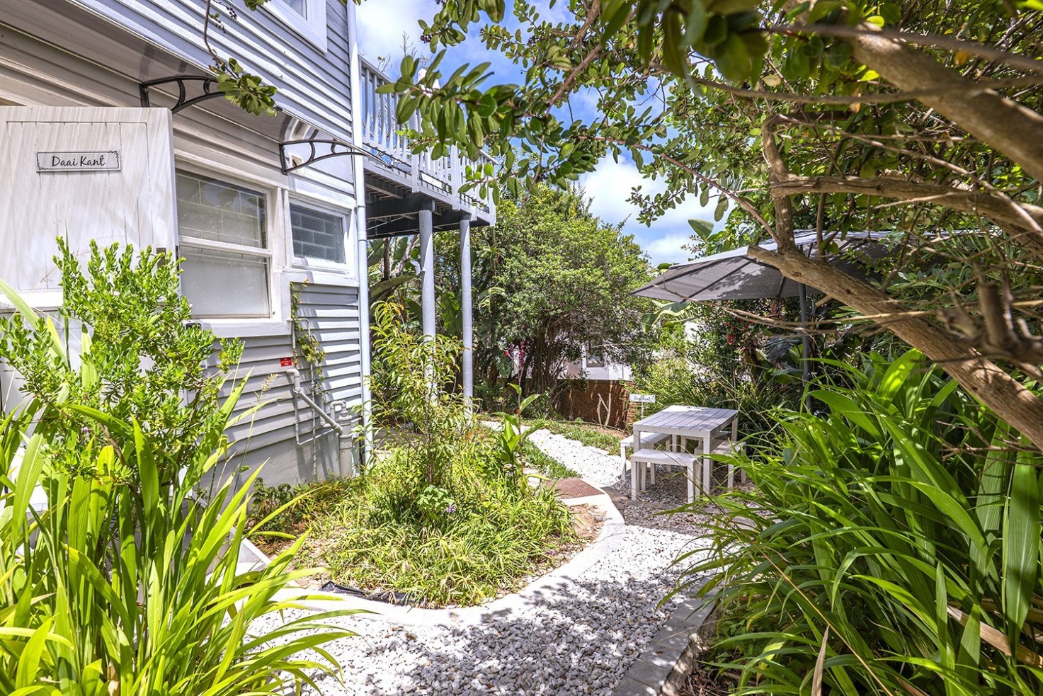 Unit 3 - BO KANT is accessible from the back of the house via a staircase leading to the wooden deck. This unit comfortably sleeps 6 guests, with each room furnished with queen size hospitality beds. It boasts beautiful wood flooring, built-in cupboards, a bathroom with shower, toilet and basin and a spacious open-plan living-kitchen area, a lovely wooden deck that offers stunning sunset views and glimpses of the distant ocean.